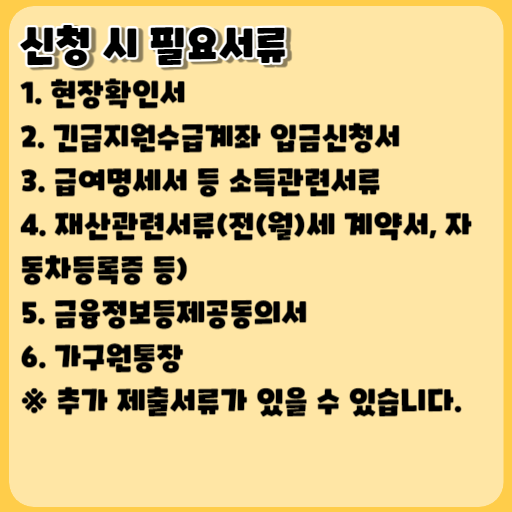 2. 긴급 지원 대상자가 거동이 불편하여 금융기관을 이용하기 어렵거나, 직접 물품을 구매하기 곤란한 경우 등 현금으로 지원하는 것이 적당하지 않은 경우에는 현물지원이 가능합니다.