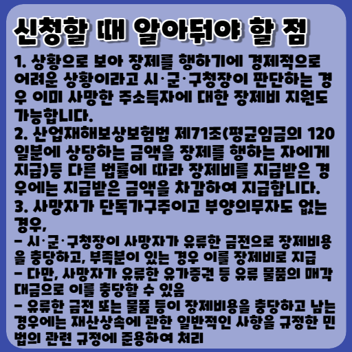 1. 상황으로 보아 장제를 행하기에 경제적으로 어려운 상황이라고 시・군・구청장이 판단하는 경우 이미 사망한 주소득자에 대한 장제비 지원도 가능합니다.