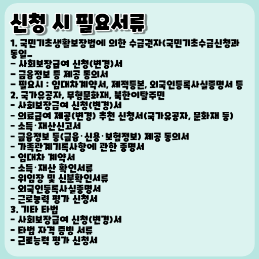 - 필요시 : 임대차계약서, 제적등본, 외국인등록 사실 증명서 등